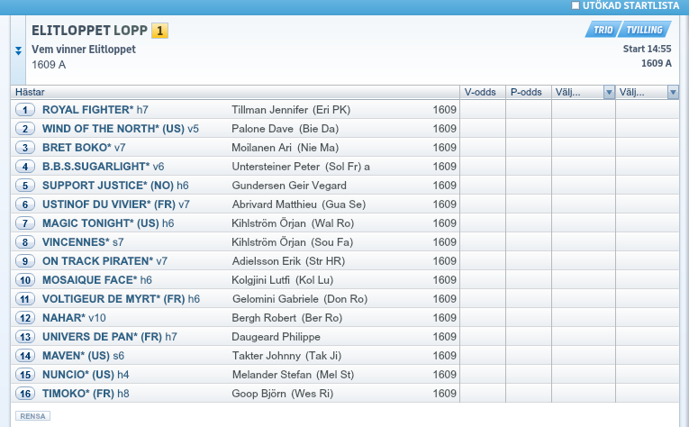 Det är inte fasta odds. Fungerar som vanligt, förutom att det är 16 spelobjekt. Spelarna lirar, ATG behåller 20% och oddset bestäms av hur spelarna lirat.