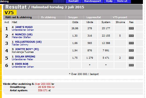 Hade först enkelad på 5 2 3 x10 Men skulle ju åt de stora slantarna och heltäckte v3-1 istället... suck.... men så länge man vinner så=)