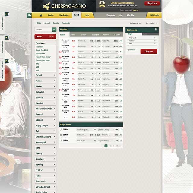 I övrigt är oddsklienten snyggt designad utefter Cherrys färgschemat, och rent navigeringsmässigt är vi positivt inställda till SBTechs oddsprodukter. Snabbhet och prestanda håller också måttet. Ytterst anmärkningsvärt är att sportsbook inte för närvarande erbjuder cash-out, vilket vi tycker bör vara en standard hos de flesta operatörer.